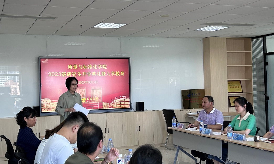 9月3日下午,质量与标准化学院2023级硕士研究生开学典礼暨入学教育会在学院资料室召开,1名博士研究生和14名硕士研究生即将开启人生的新篇章。会议由学院党委副书记张磊主持,学院党委书记、院长张嵩、副院长程馨以及研究生导师、辅导员和2023级研究生新生参加了会议。