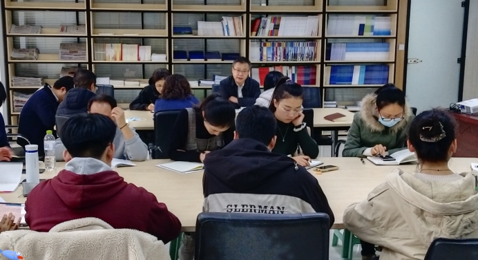 2021年12月10日下午,校党委常委、副校长肖江南在学院资料室,为我院全体师生党员宣讲党的十九届六中全会精神。宣讲会由党支部书记、院长张嵩主持。