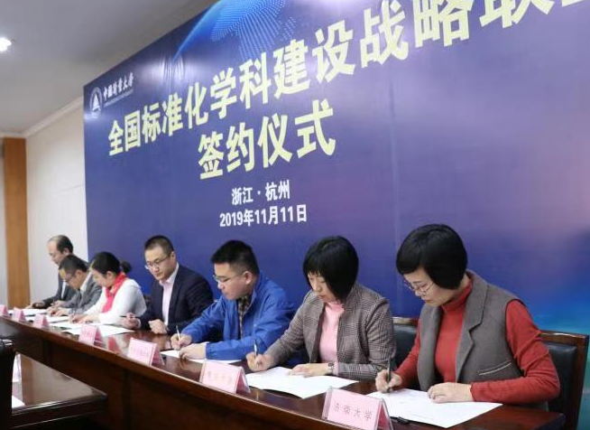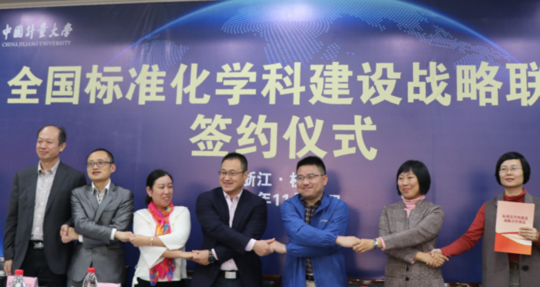 、广东开放大学、广东理工大学、南通理工学院、济南大学、聊城大学共同进行成立“全国标准化学科建设战略联盟”的协议签约仪式。