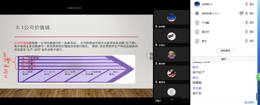 由于我院很多课程都采用案例教学方法,有时候是通过是视频播放案例。在开学前一周,大家调试软件时还不会使用在腾讯会议软件中插播视频。在今天的课程中,庄馨雨老师实现在了在课程中插播视频,使得最初不能播放视频这个难题得到解决。还增加了与学生在线对话,实现了专业英语“听说读写”中“说”部分,大大调动了学生课堂参与的积极性。