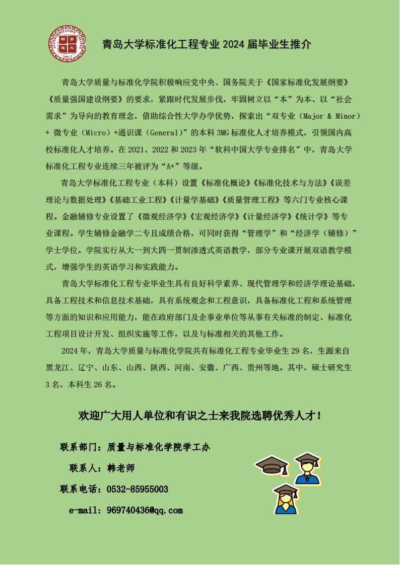黑料不打烊 标准化工程专业2024届毕业生推介