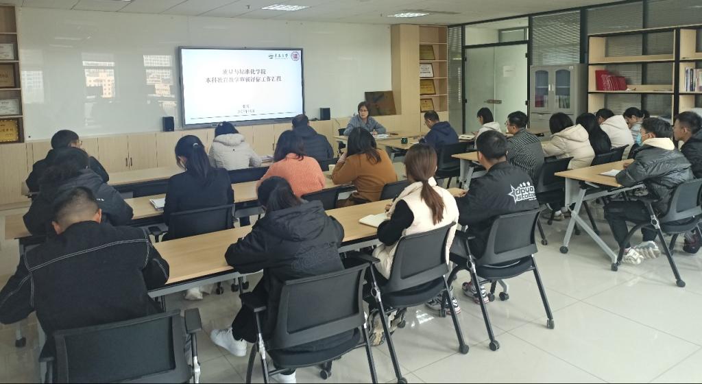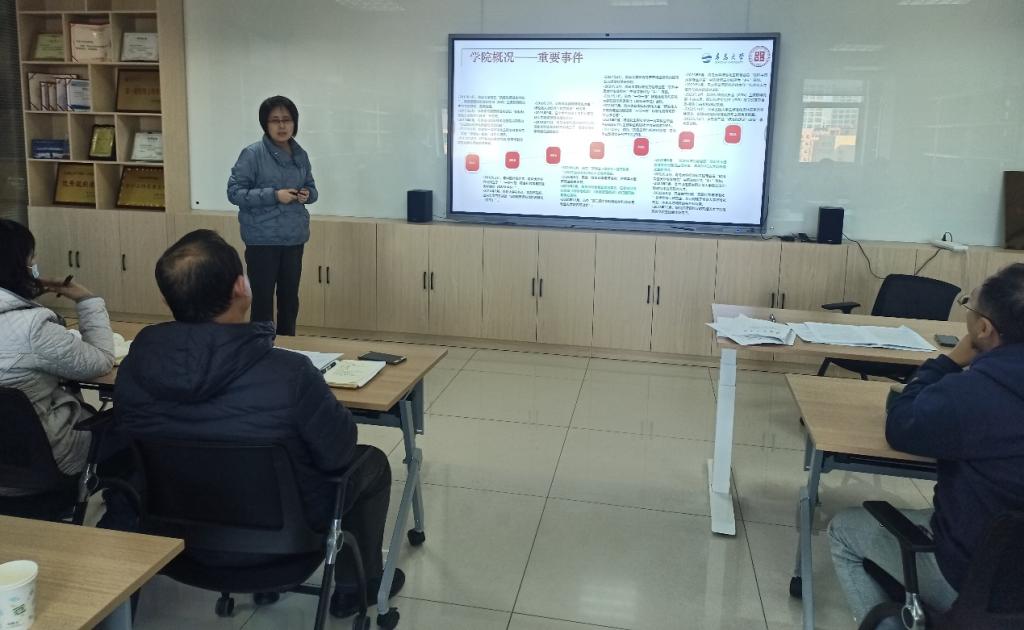 张嵩强调了新一轮本科教育教学审核评估是彰显我校办学特色、提升人才培养质量的重要契机。新一轮审核评估对接新时代本科教育新需求,在评估导向、评估内涵、评估类型、评估方法、评估功能等方面表现出“新变化”,要以立德树人为评估导向、强调本科教育的内涵发展、评估分类更加明确、强化评估结果推动教学改革、程序方法更加高效等。帮助全院师生更全面准确地把握新一轮审核评估的重点内容,领会新一轮审核评估指标体系内涵,精准推进审核评估相关工作。同时,针对学院学生、教师、管理人员三类人群在线上、线下评估的重点工作分别做了细致解读。线上评估重点开展“1+3+3”报告等资料审核及线上访谈,线下评估重点开展听课、座谈等。重点解读了学校“一二三四五”协同育人教学改革成果内容和人才培养高质量发展的“四个融合”实现路径。最后,向全院教师及学生代表汇报了学院在办学定位与人才培养目标、师资队伍与教学资源,以及本科人才培养措施与成效方面的具体情况。