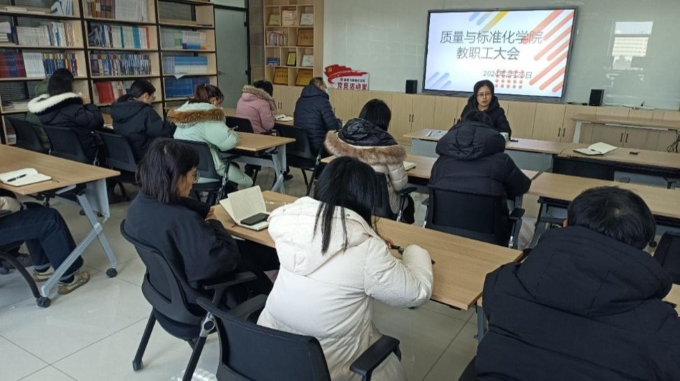2月25日下午,质量与标准化学院召开全体教职工大会。会议传达2024年春季学期中层干部学习研讨班会议精神,动员部署2024年学院工作重点及本学期开学主要工作。全院教职工参加会议,院党委书记、院长张嵩主持会议。