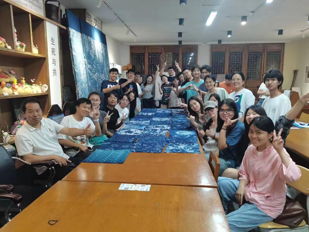 非遗中心进行文化体验活动。非遗中心负责人侍锦教授带领大家参观了非遗传承实践教育基地,详细介绍了标准化相关的非遗产品,使大家切身感受到了标准与文化的紧密联系。在负责人的指导下,营员们进行了扎染技艺的实践体验,加深了对非物质文化遗产的了解和保护意识。