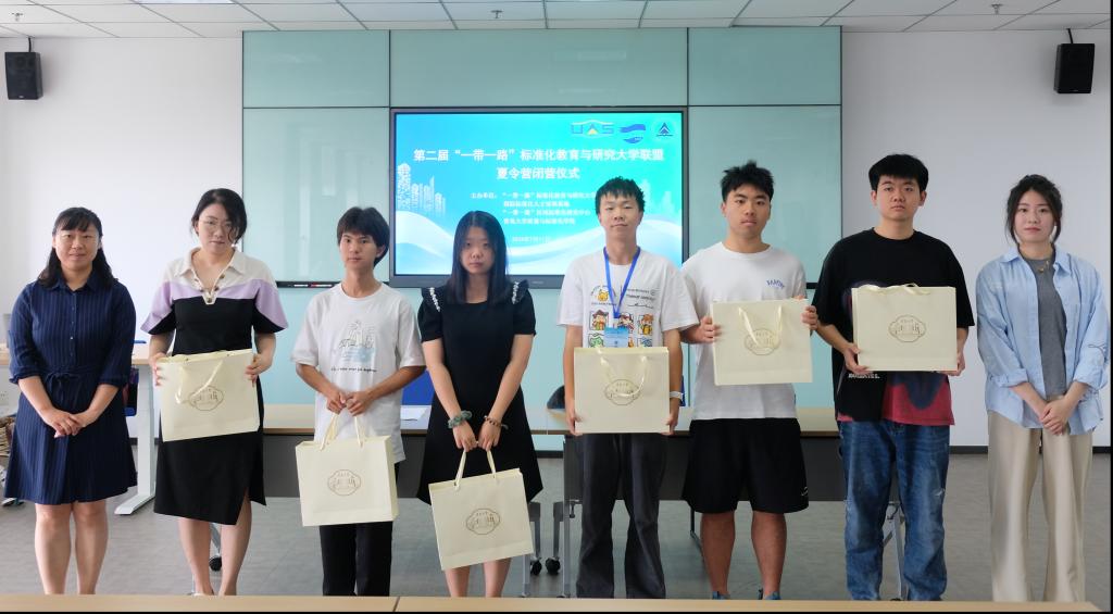会议中心举行。质量与标准化学院副院长程馨和“一带一路”标准化教育与研究大学联盟秘书沈慧麟为营员们颁发了结营证书和纪念品。