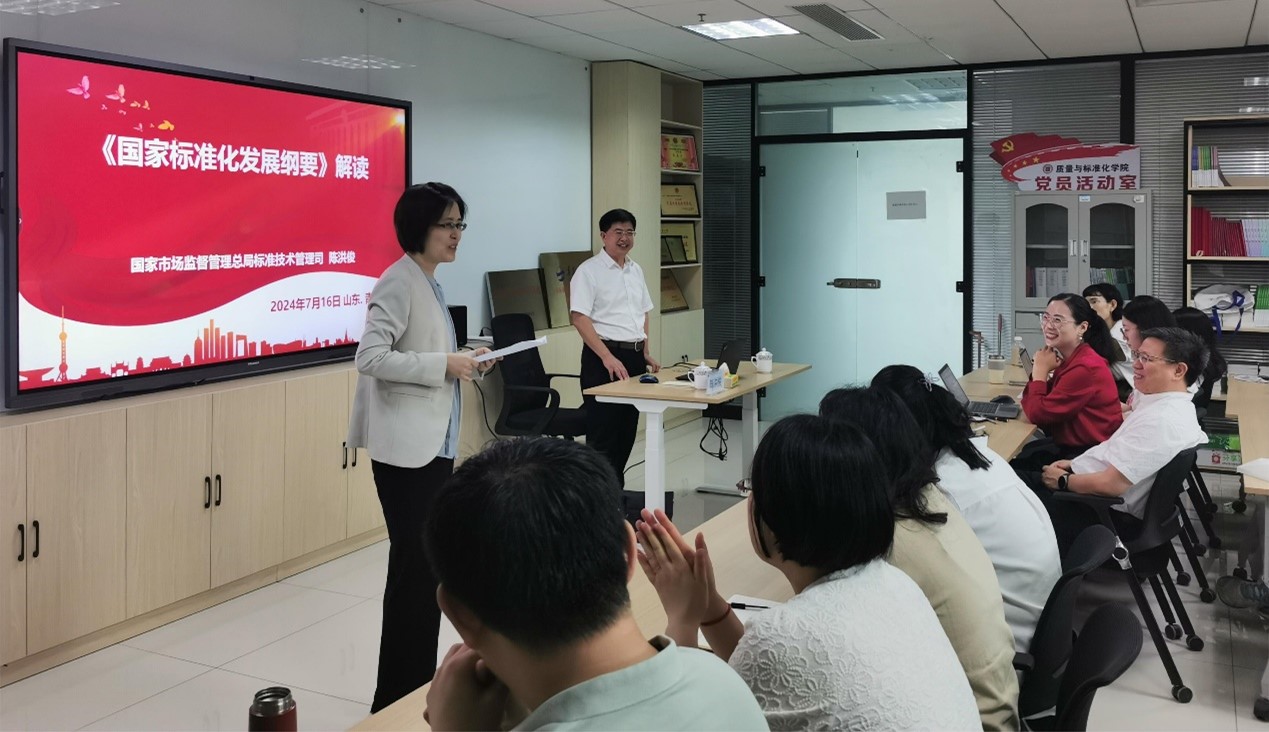 质量与标准化学院师生对国家标准化政策的理解和应用能力,7月16日上午,学院邀请原国家市场监督管理总局标准技术管理司陈洪俊副司长(正司级)做“《国家标准化发展纲要》解读”专题讲座。讲座由校人文社科处处长、质量与标准化学院党委书记、院长张嵩主持,学院全体教师、在校本科生和研究生参加。