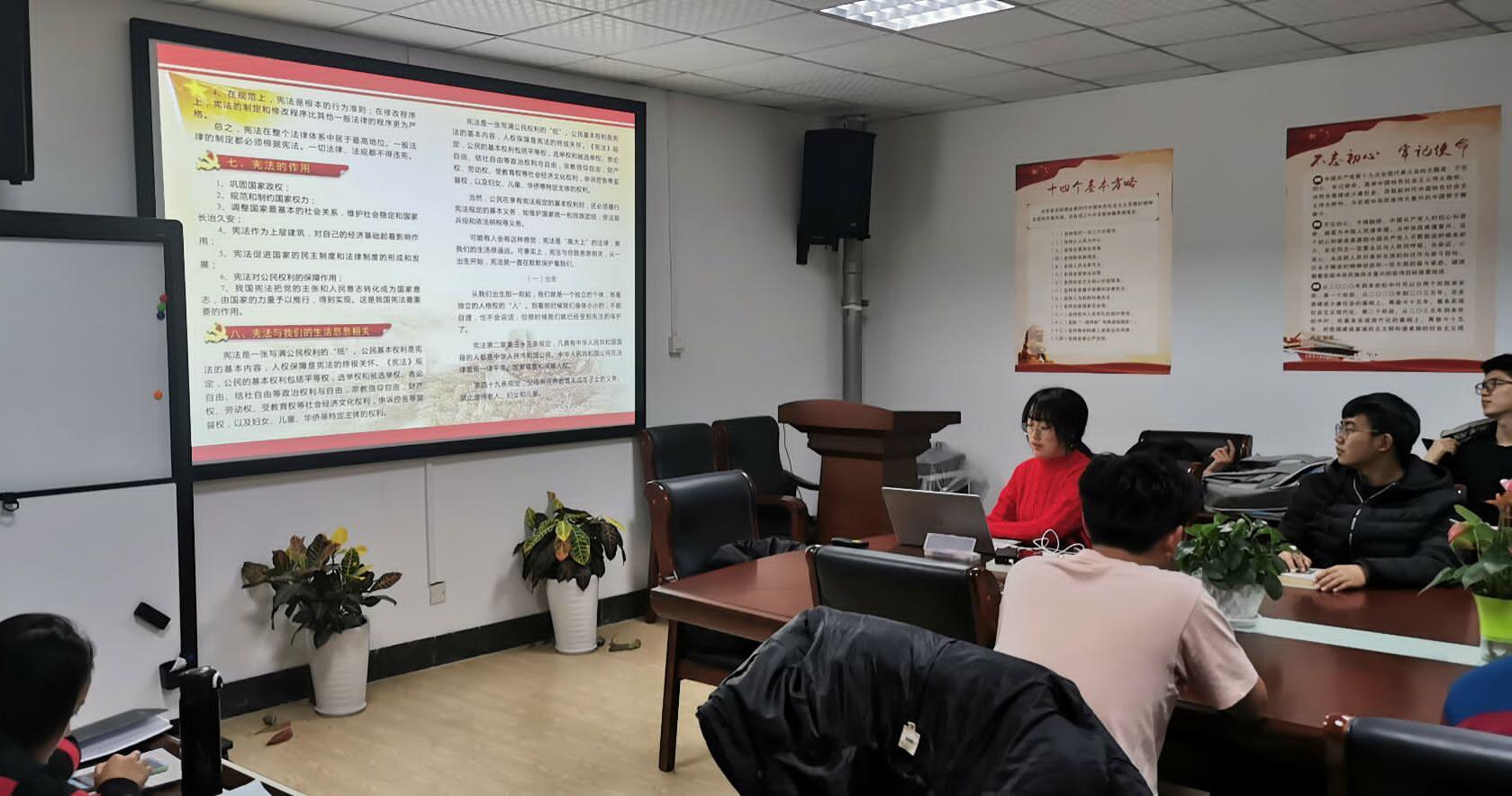 班会首先让同学们宣誓宪法手册中的内容,强调了大学对于宪法教育的重视,其次介绍了宪法的起源,原则,地位,以及科普了国家宪法日。介绍了宪法不同于一般法律的特殊性,宪法的重大意义所在,更加深了同学们宪法与我息息相关的意识。
