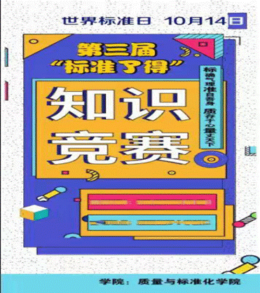 为了进一步普及有关标准的的知识,2021年10月15日,质量与标准化学院学生会围绕第52届世界标准日“标准促进可持续发展,共建更加美好的世界”的主题,积极举办“标准了得”知识竞赛。