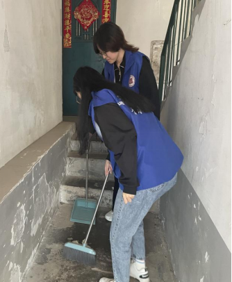 大家还分小组深入小区、走进居民楼,对路边乱停乱放的自行车和楼道内的垃圾进行整理和清除。