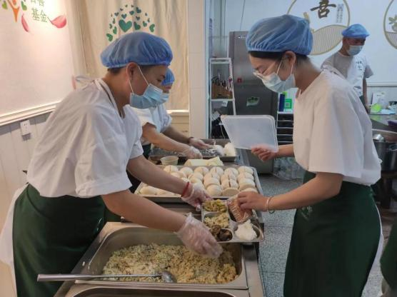 志愿者们早早地来到餐厅,擦桌子、扫地拖地、清理杂物,进入后厨洗菜、择菜、切菜。一番忙碌后,热腾腾的饭菜装入保温餐箱,老人们也陆陆续续地来到餐厅。志愿者们亲切地陪老人们拉家常、唱山歌、扭秧歌,其乐融融。随后,志愿者们将午餐送到老人手中,老人们吃在嘴里、暖在心上。