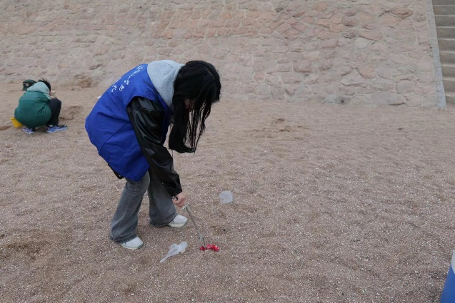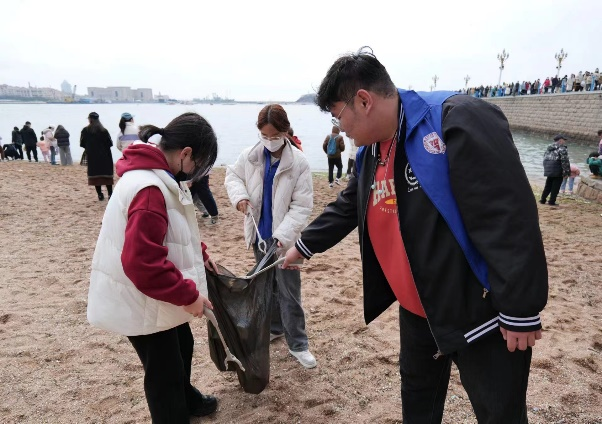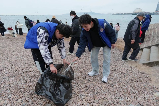 3月16日,2023级的团员青年前往栈桥景区开展美丽环境志愿服务,守护蓝色海洋。志愿者们手持夹钳等工具,分工合作、相互配合,循着海岸沿线清理烟头、塑料袋等垃圾,随后打包处理,让海岸面貌焕然一新。志愿者们深入践行雷锋“不怕脏、不怕累”的精神,为海洋生态环境贡献一份力量。