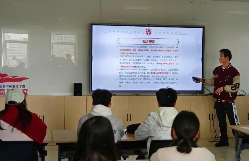 “安全无小事,责任在心中”。为深入贯彻落实总体国家安全观,全面深入推动校园安全教育工作,提高广大学生的法治意识、安全防范意识和自我防护能力,3月29日下午,质量与标准化学院在学院资料室开展了校园安全主题会议暨校园安全主题教育活动,学院党委副书记张磊、辅导员韩诗、学生会成员以及23级全体本科生参加。