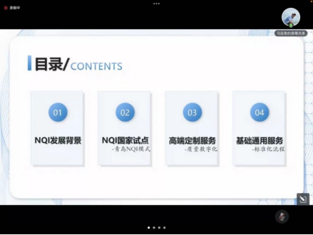 马总主要从质量基础设施(NQI)发展背景、质量基础设施(NQI)国家试点——青岛NQI模式、高端定制服务——质量数字化和基础通用服务——标准化流程四个部分进行了详细叙述。