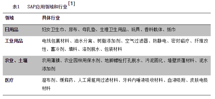 技术专利申请后,公司在行业的知名度迅速提升,美国宝洁公司在观看过现场实验后,立刻表示要与公司建立长期合作关系。但是公司当时的产量远远不能满足宝洁公司的需求量。而SAP材料被广泛的应用于日用品、工业用品、农业、土壤、医疗等领域30多个具体行业中,具体情况如表1所示。可见,技术优势一旦确立,打破了长期该产品国外垄断的局面。同时该产品面临了巨大的应用前景,同时也为使用SAP材料的这些领域的具体行业的中国企业提供了国内先进技术产品。