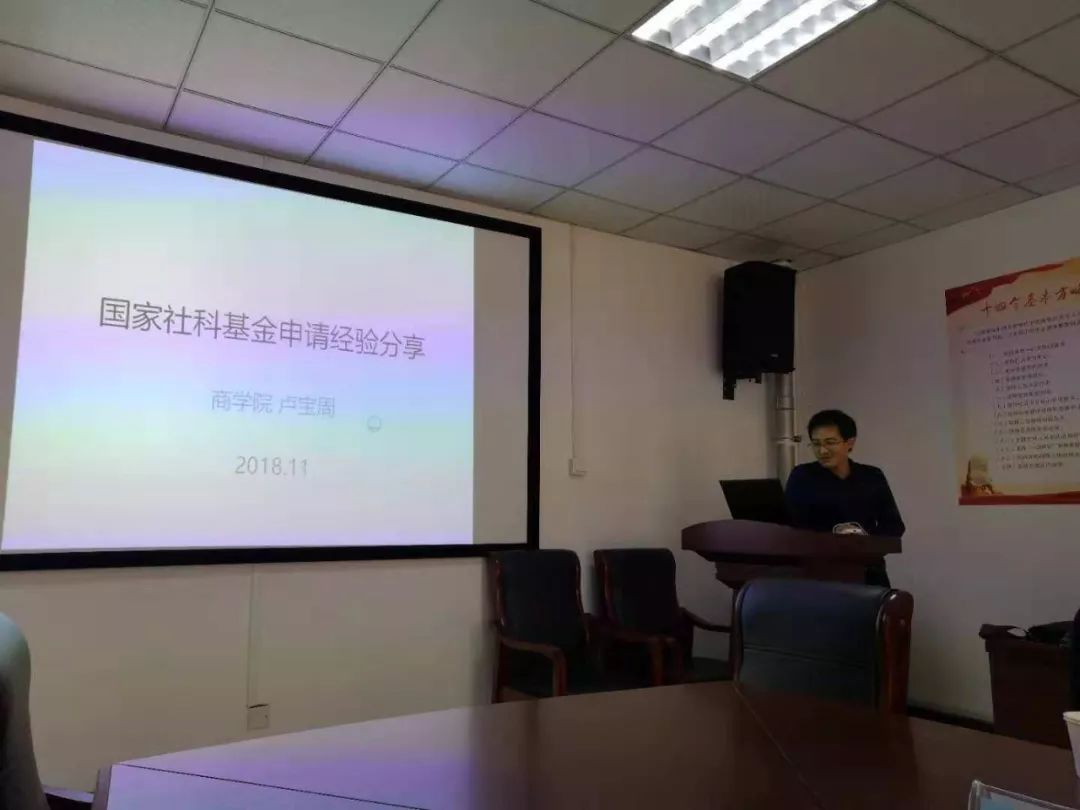 特聘教授卢宝周莅临标准化学院为全体教职工做了名为《国家社科基金项目申报经验交流》的主题讲座。学院全体教师参加了此次讲座,学校人文社科处张嵩老师也受邀出席了此次讲座。