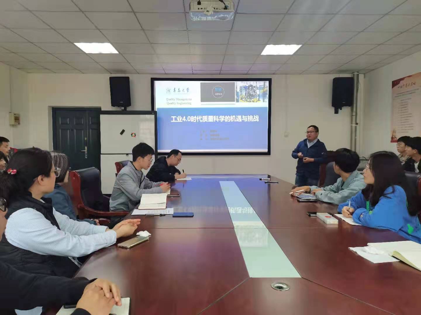 5月11日下午,学院在会议室举办“标准化+”学术大讲堂活动,由我院特聘教授殷宪辉做了题为《工业4.0时代质量科学的机遇与挑战》的报告。本次大讲堂由张嵩院长主持,全体教师,20级、19级学生聆听了报告。