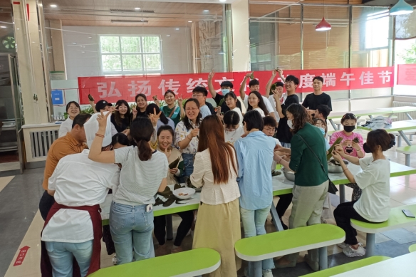 在膳食中心高级面点师刘老师的指导下,大家围在一起,捋粽叶、做漏斗、填馅料、压实、封口、扎捆,一盘盘包好的粽子渐渐堆成了小山。看着包出的粽子千姿百态、“个性十足”,现场不时发出欢快的笑声,气氛热烈,其乐融融。师生们不仅体验到劳动的快乐,更深刻感受到了端午节民俗文化的魅力。