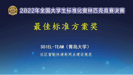 由我院商晓婷、程馨老师指导的标准化工程专业2020级“SOIEL-TEAM”团队针对我国智能快递柜网点建设的发展现状和快递行业的市场需求,实地调研、发放问卷等多种方式深入社区内部挖掘问题,进一步规范了选址和场地的合理性、外观标识和服务使用的规范性、收费标准和功能属性等,创新提出了“最佳服务半径”等条款,形成《社区智能快递柜网点建设规范》团体标准。经过多轮的角逐,该项目荣获竞赛一等奖和“最佳标准方案”奖。