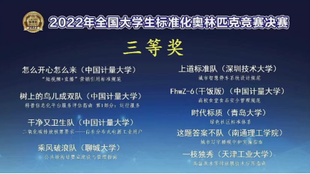 为贯彻落实《国家标准化发展纲要》精神,普及标准化知识、传播标准化理念、提升全民标准化意识,推进大学生创新和实践能力提升,提高学生培养质量,促进标准化工程特色专业的建设,中国标准化协会、中国计量大学和全国标准化大学联盟举办全国大学生标准化奥林匹克(2020年前是“标准化杯”)竞赛。本届大赛于今年4月正式启动,分为初赛、复赛、决赛三个阶段,包括“碳达峰碳中和标准化”“智慧城市标准化”“绿色校园标准化”“公共服务标准化”“科普与标准化”“数字标准化”和“可持续发展标准化”七大主题,设置了标准化专业赛道和非标准化赛道。学院精心组织了11支队伍,62名同学参加标准化专业赛道的竞赛。历时6个多月的层层选拔和激烈比拼,7支队伍进入复赛,最终2支队伍脱颖而出,进入决赛。