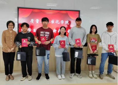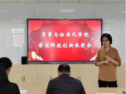 首先,学院党委副书记张磊宣读表彰决定,授予穆云龙等32名同学“质量与标准化学院2022年学生科技创新标兵”荣誉称号。接下来,学院党委书记、院长张嵩等班子成员为受表彰同学颁发证书和奖品。