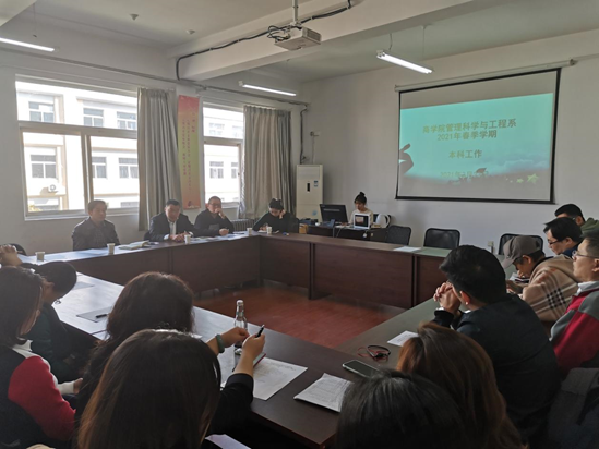 管理与科学系教工支部召开了2021年度春季扩大会议,本次会议由管科系教工党支部书记、主任张桂涛老师主持,管科系教工支部党员、全体教师、辅导员受邀到会参会。另外,会议特邀学院王功勇书记和学院党政办宋畅主任到会指导工作。
