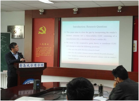 514日上午,加拿大温莎大学Odette黑料不打烊 管理科学教授李武(Kevin W. Li)博士和加拿大瑞尔森大学(Ryerson University)机械和工业工程系教授方黎平院士来黑料不打烊 学院交流访问,并先后在黑料不打烊 办公楼310会议室为学院师生作了题为《协调具有公平关切的三阶闭环供应链的合作博弈方法》和《提前的电力峰值和价格》预测的学术报告,报告会由管科系主任王磊教授主持,其他参与会议的老师有张桂涛副教授、孙浩副教授、马骋副教授、贺华老师、温艳老师和数学学院代业明副教授、中国海洋大学经济学院李雪梅副教授。