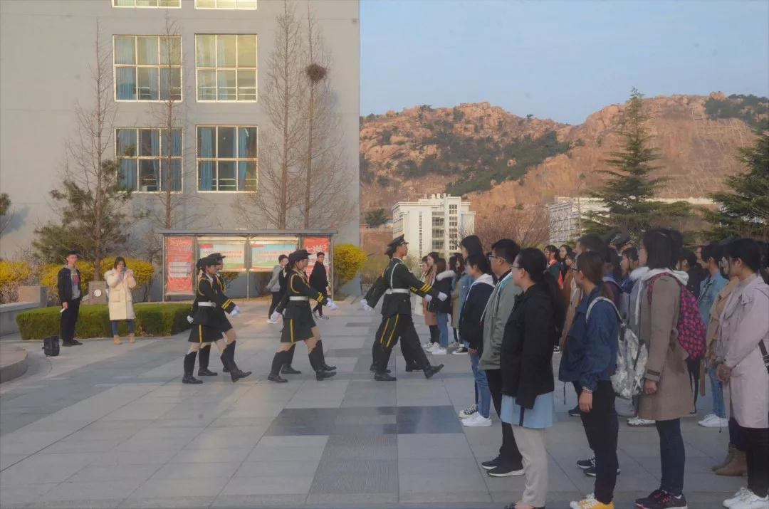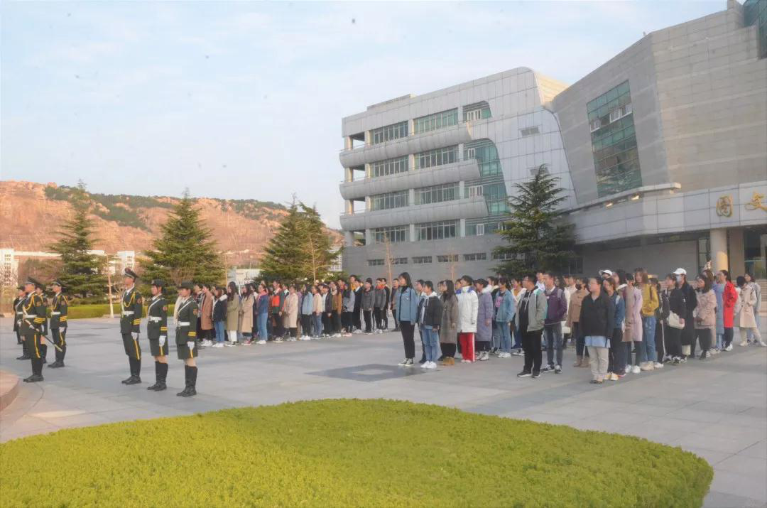 早春的风吹醒学子的梦,四月一日的清晨,我们准时集合在图文中心的国旗下,以崇高的敬意开启新一周的征程。
