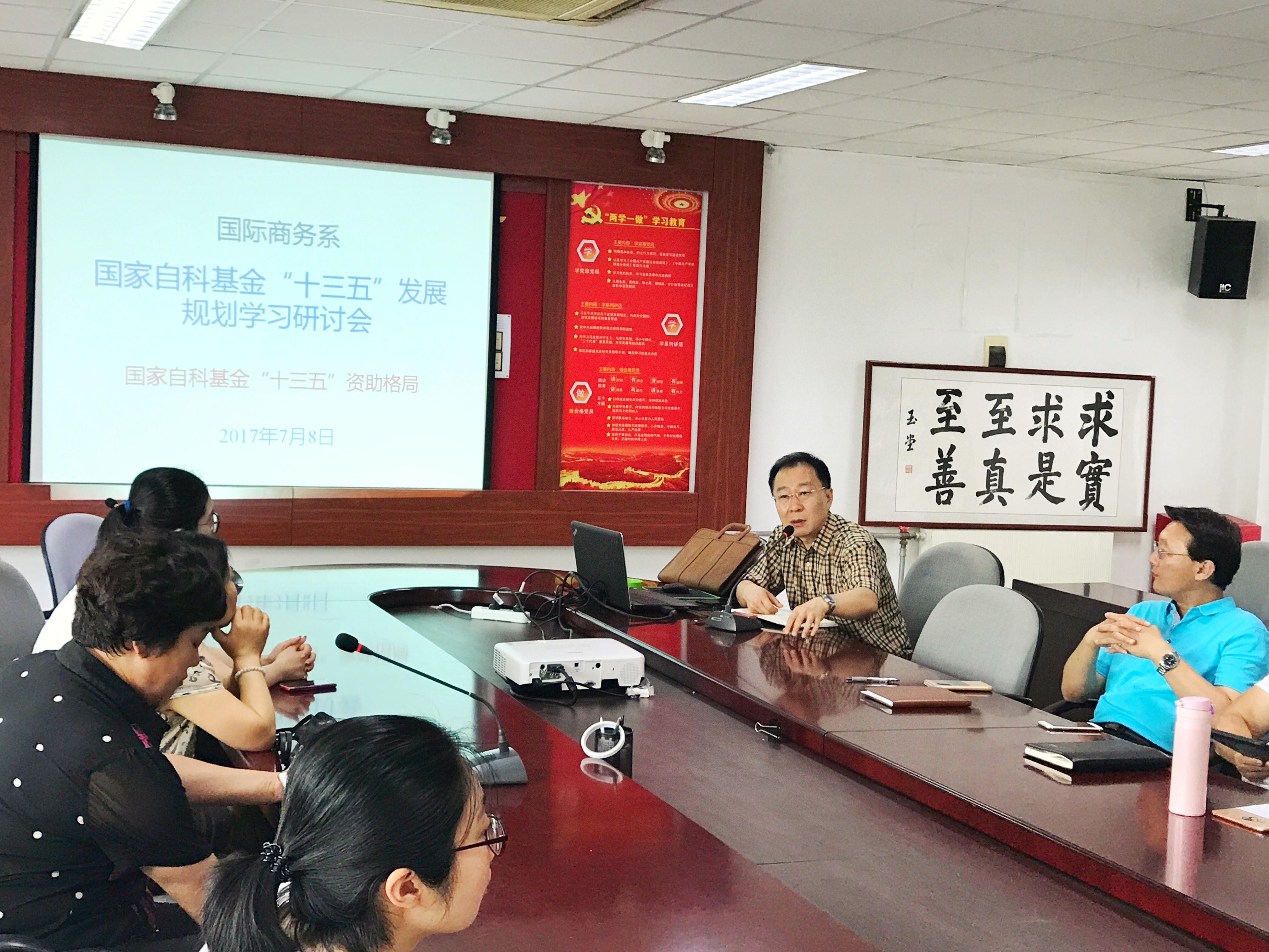 2017年7月8日(周六)上午10:00,国际商务系在金家岭校区西院办公楼310,召开《国家自然基金“十三五”发展规划》学习研讨会。会议由系主任徐永辉主持,并讲解了规划背景,遴选优先发展领域及其主要研究方向的原则,并针对本系学科特色和建设方向,重点阐述了管理学部12个优先发展领域。鼓励本系教师积极申报,并对青年教师未来科研方向、目标和任务提出了要求和改进措施。