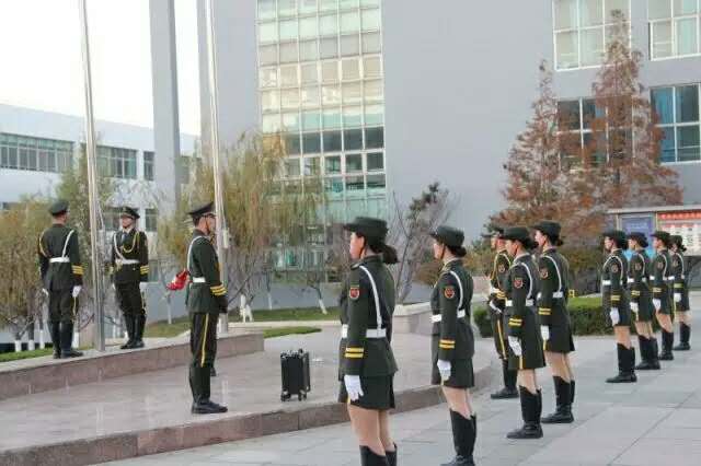在全体师生的注目礼下,英姿飒爽的国旗护卫队队员们护送鲜艳的五星红旗进场,整齐行礼。伴随着庄严的《中华人民共和国国歌》,五星红旗冉冉升起,迎风飘扬。在场的每一个人向国旗行注目礼,深怀对祖国无限的热爱和崇高的敬意。