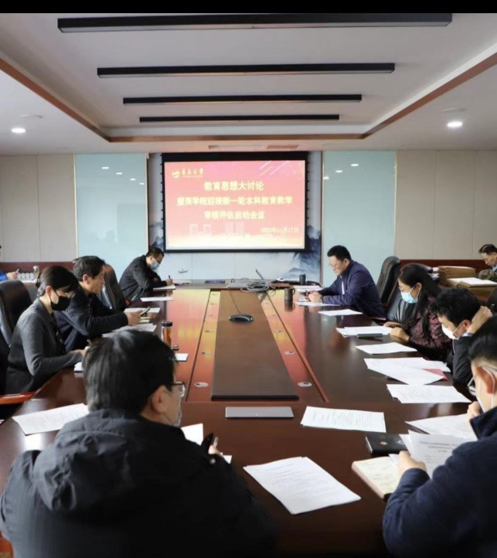 在学院会议室召开教育思想大讨论暨迎接第一轮本科教育教学审核评估启动会,学院党政领导、各系主任、分管本科副主任、专业负责人、各部门负责人、全体辅导员参加了会议。会议由学院党委书记王功勇主持。
