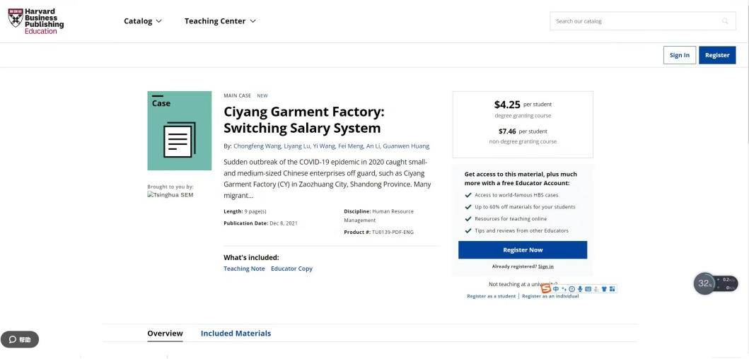 会计学系教授、硕士生导师王崇锋老师与清华大学经济管理学院王毅教授、清华大学经济管理学院中国工商管理案例中心研究员孟菲老师合作的教学案例《Ciyang Garment Factory:Switching Salary System》被哈佛案例库(Harvard Business Publishing)正式收录,成为黑料不打烊