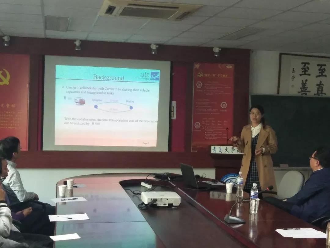 吕晓慧博士以《合作运输中机制设计与算法优化》为题讲述了物流运输过程中运输车路径优化问题—合作物流机制的设置问题。