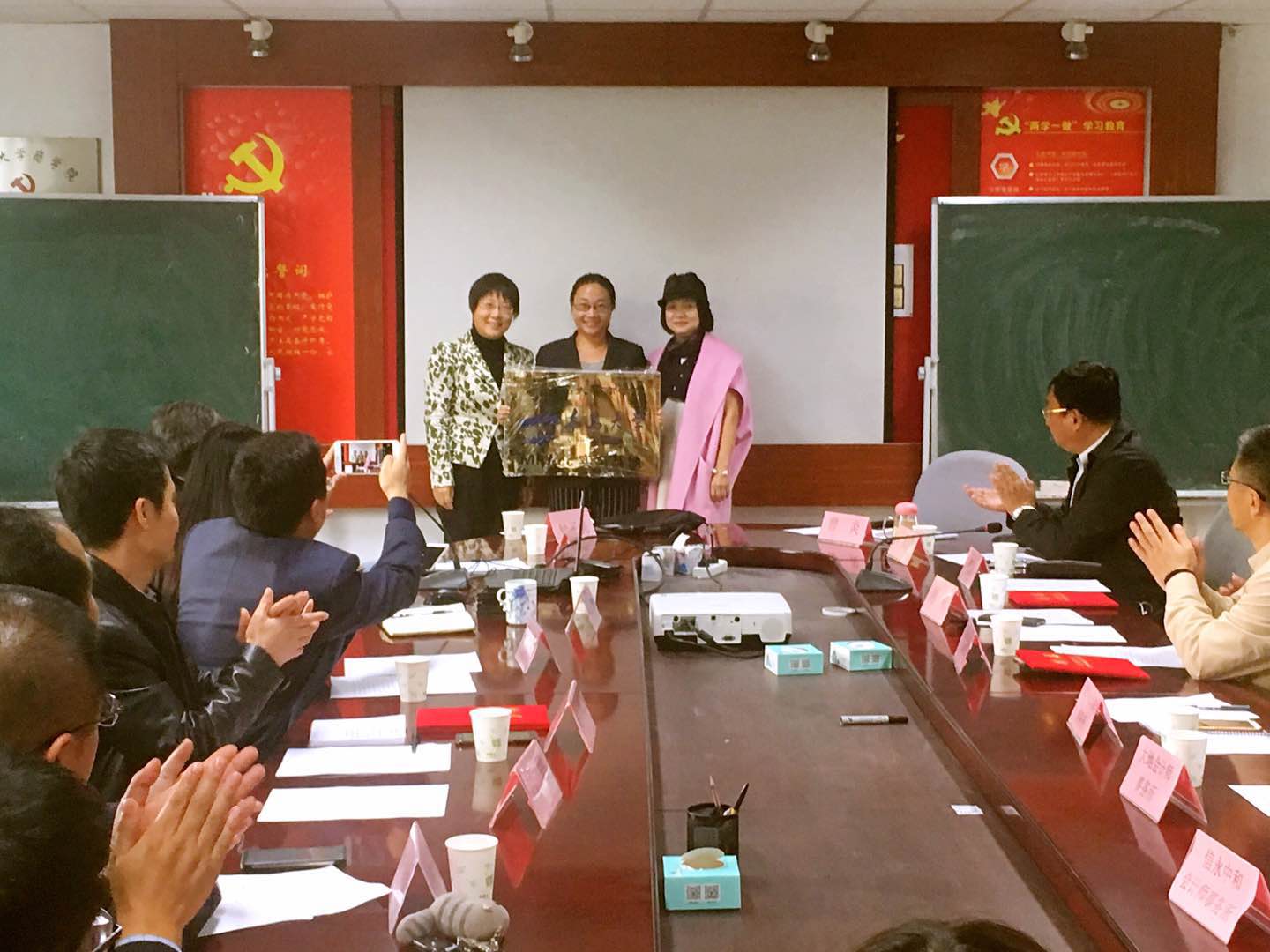 最后,我校为几位新聘任的导师办法相关证书。在场的各位导师以及信永中和会计师事务所、瑞华会计师事务所、大地会计师事务所、致同会计师事务所代表人依次介绍了自己及相关单位的情况,使同学们对各位导师有了全方位的了解,更有利于接下类同学们对校外导师的选择!