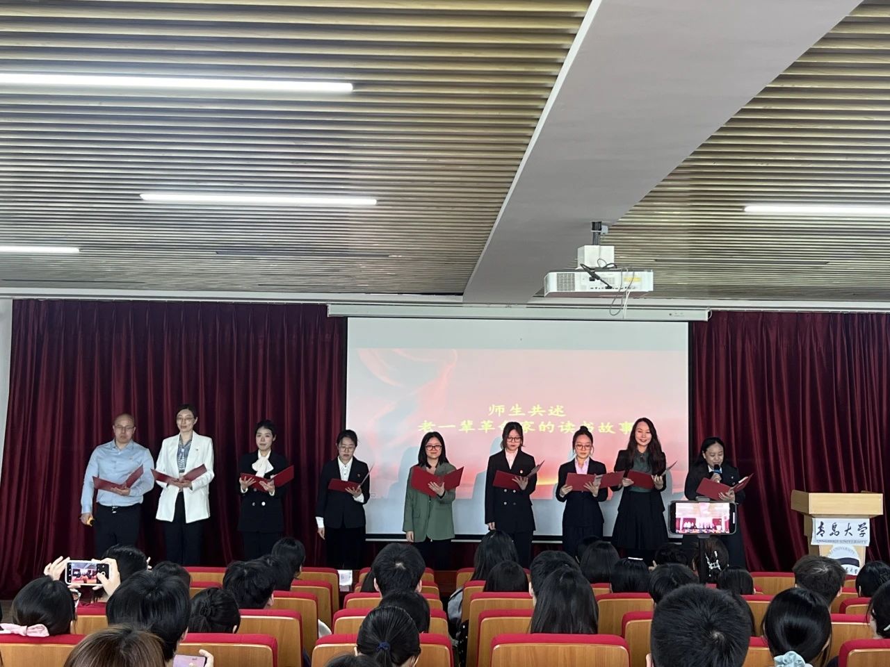 在历史的长河中,有这样一群人,他们以书为伴,以智慧为剑,用知识的光芒照亮了前行的道路。学生党支部书记陈鑫、张瑶、马玮以及辅导员王国栋、张天姿与党员学生一起,声情并茂地讲述了毛泽东、周恩来等9位老一辈革命家的读书故事。老一辈革命家在艰难岁月中坚持读书,不仅是个人修养的体现,更是民族精神的传承,永远是大家读书学习的榜样。