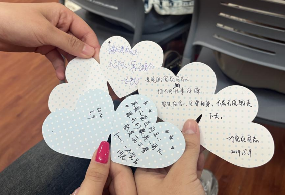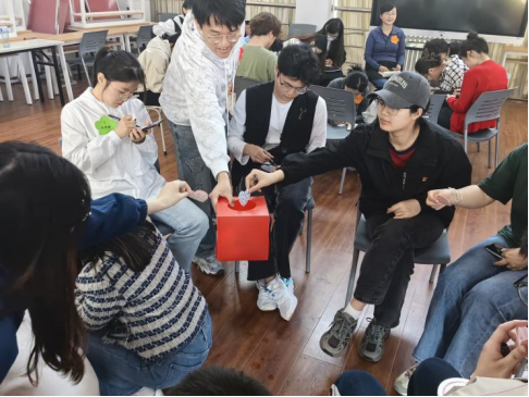 此次主题党日以“党建+心理团辅”相结合的形式开展,将党员同志随机分为四组,按小组进行活动。小组内党员来自不同的学生支部,大家以串糖葫芦的方式介绍自己的名字、爱好等,增进了彼此的了解,体会到被人记住是多么美好的事情。