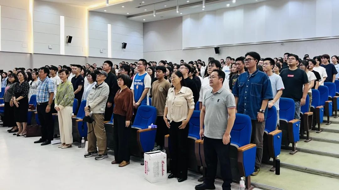副院长张磊出席。各系主任、硕士生导师代表、相关科室负责人、2024级新生辅导员及全体研究生新生参加。