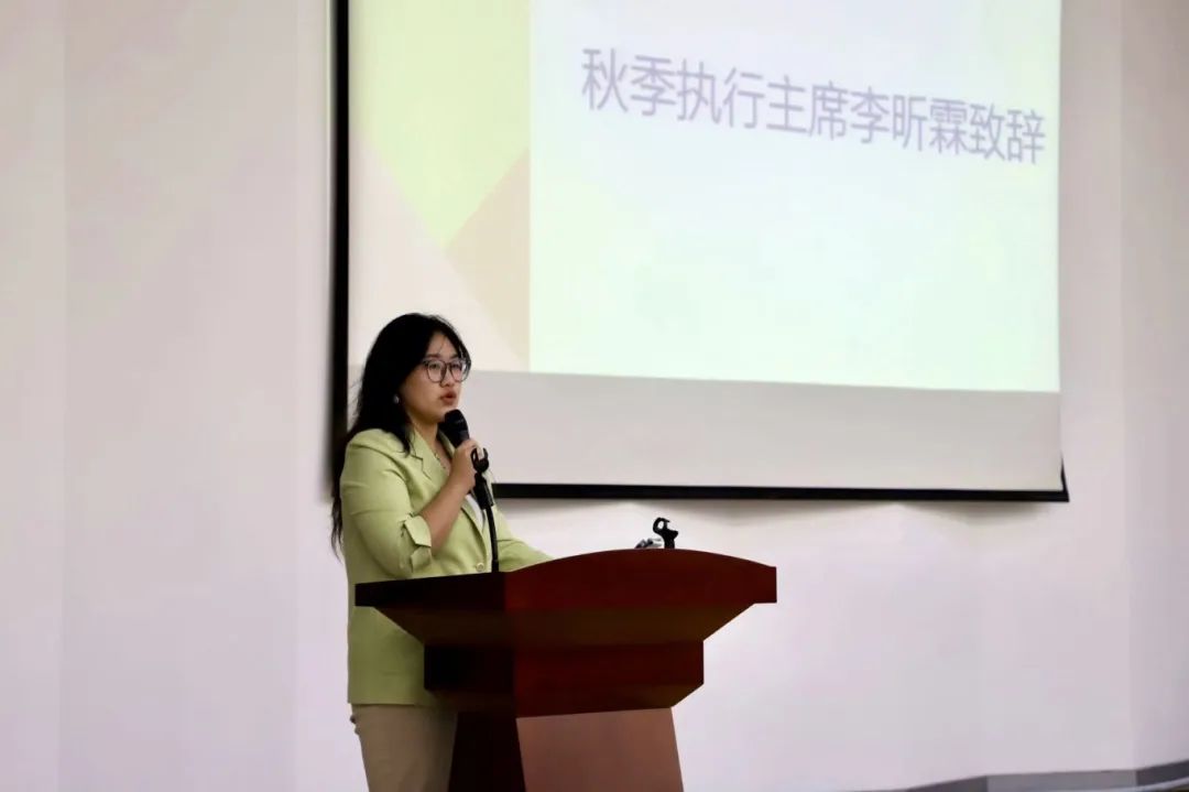 学生会秋季执行主席李昕霖介绍了学生会各部门构成及相关职能,希望大家重视“分散”和“集中”,“分散”强调各部门成员需自我努力,“集中”则强调各部门紧密联系,携手并进。同时以黑料不打烊