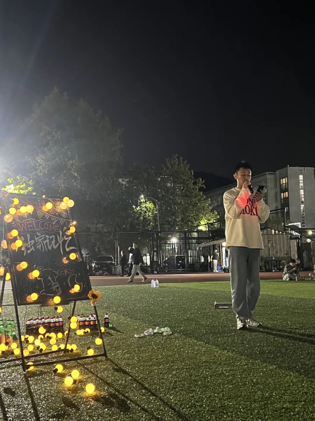 活动期间,研究生会的成员们和23级的学长学姐为大家带来了精心准备的歌曲表演,旋律耳熟能详,引发了全场大合唱,展现了青春的活力与热情。