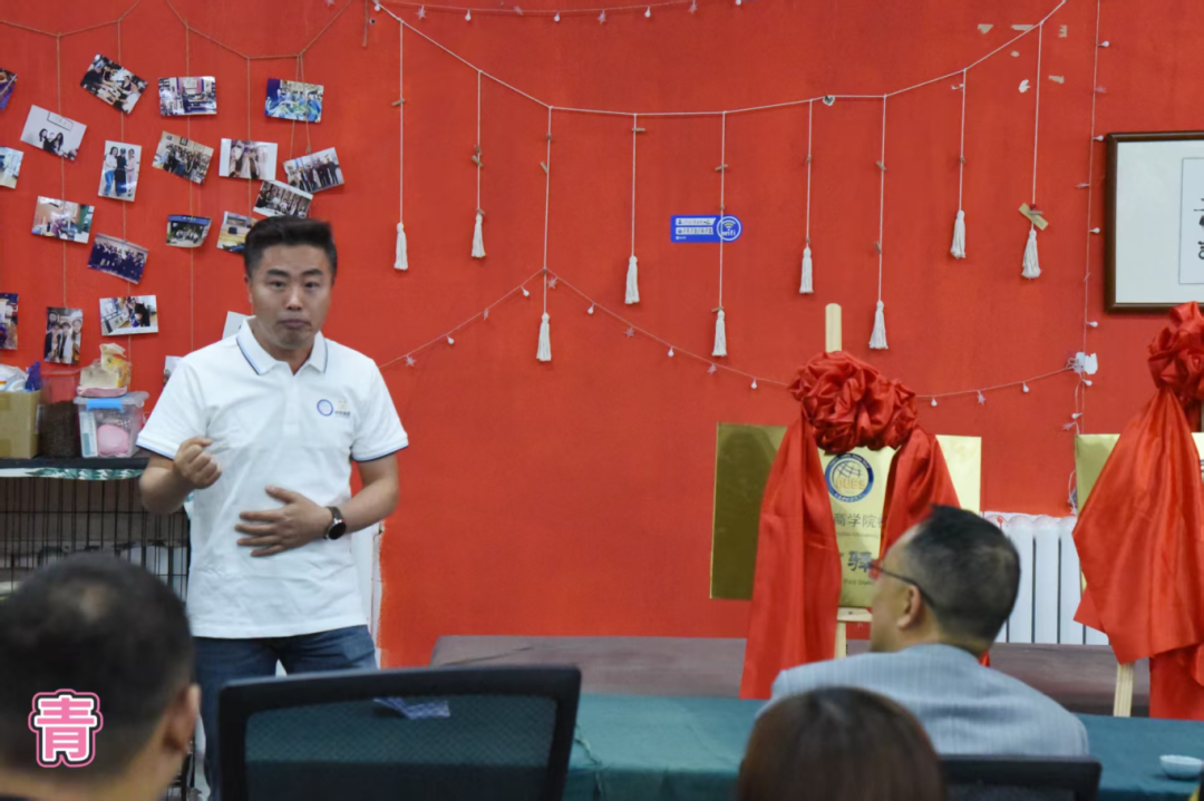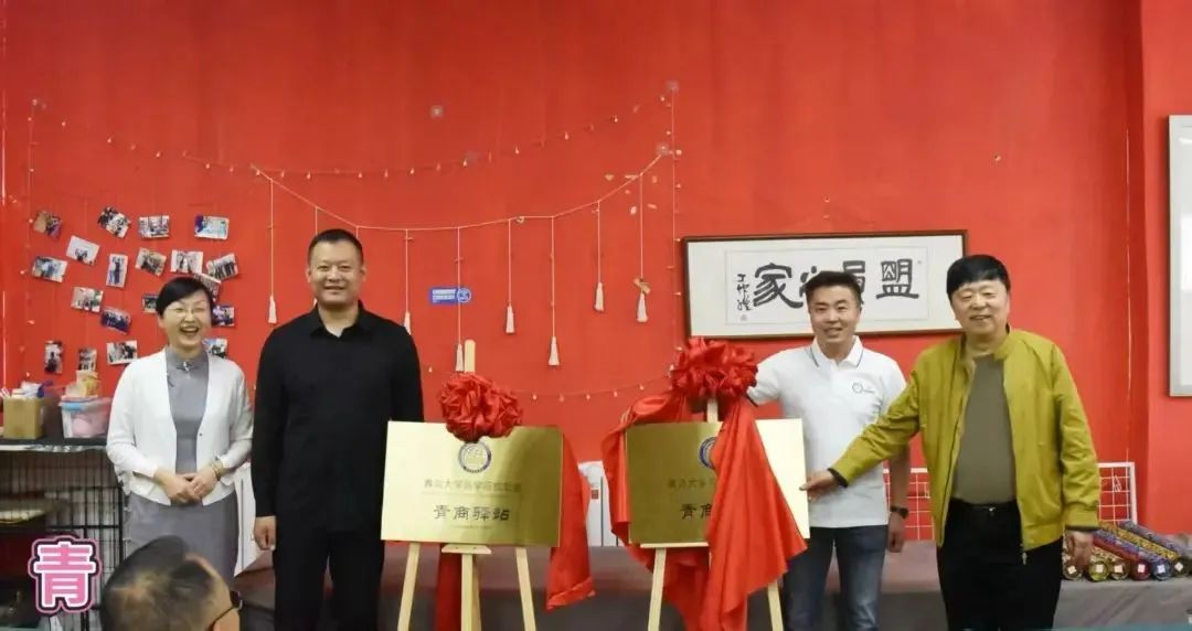 党委副书记尼梅颉为闵恒集团、青岛萨么餐饮管理有限公司两大校友企业“青商驿站”揭牌。