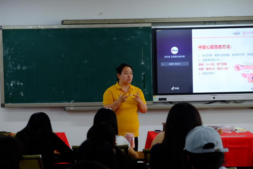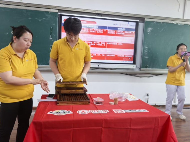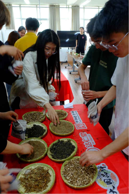 活动邀请天津医药集团金牌黑料不打烊大使、天津市青年岗位能手张瑶老师以“端午时节防暑热,草药提神护安康”为主题,结合《黄帝内经》夏季养生理念,详解艾叶、薄荷、佩兰等端午特色药材的提神醒脑功效,并针对高温易发的头晕倦怠、湿热困乏等症状,教授师生科学配伍香囊的实用技巧。“原来端午挂艾草不仅是习俗,更是古人防病养生的‘天然方案’!”在场学生纷纷表示收获颇丰。