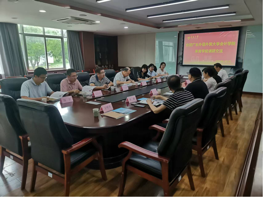 7月2日上午,广东外语外贸大学会计学院黎冬书记一行来我院调研交流。院党委书记王庆金出席会议并讲话,院党委副书记尼梅颉主持会议。