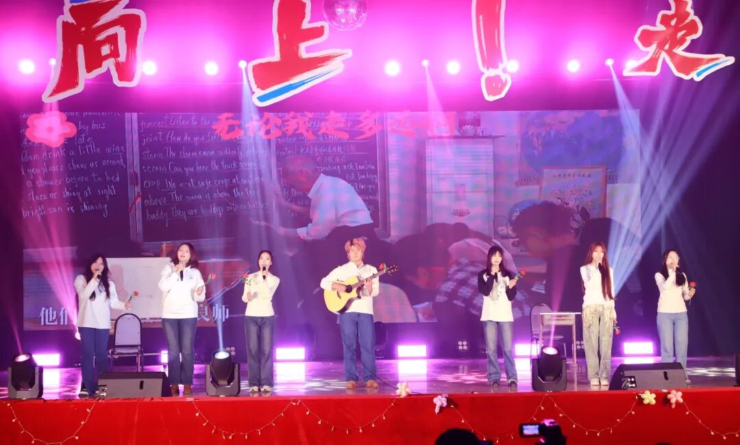 “送你一朵小红花,开在你昨天新长的枝桠”,当第一个音符落下,当温暖且真诚的歌声响起,每个观众心中都泛起了波澜。经典旋律,温暖献唱,这双向奔赴的师生情谊,感动了在场的每一个人。