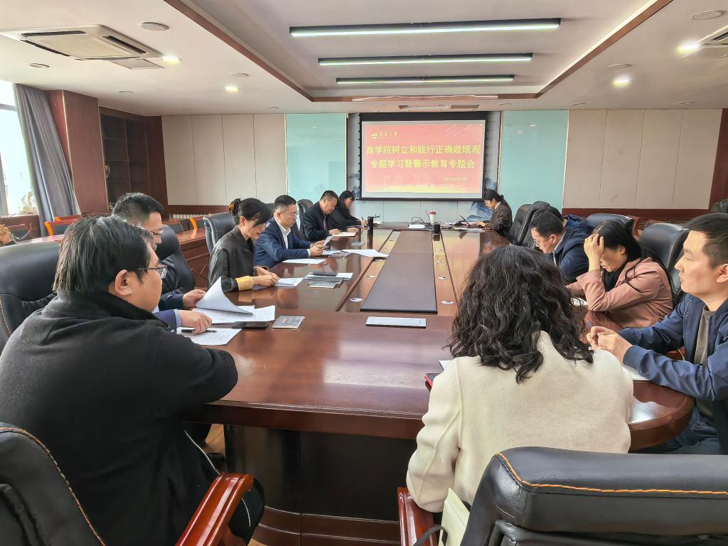 在310会议室召开树立和践行正确政绩观专题学习暨警示教育专题会议。党委委员、班子成员、各支部书记参加,会议由学院党委书记王庆金主持。