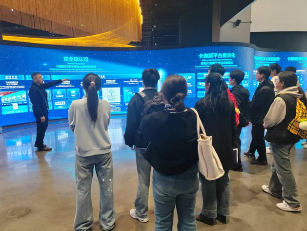 在卡奥斯工作人员的引导下,师生们参观了生态展展览区。通过沉浸式体验与专业讲解,大家系统地了解了卡奥斯在工业互联网平台建设、大规模定制模式、跨行业生态赋能等方面的创新成果,以及标准化在智能制造、数据互通、绿色低碳等场景中的关键支撑作用,对标准化引领产业高质量发展的实践路径有了更加直观的认识。
