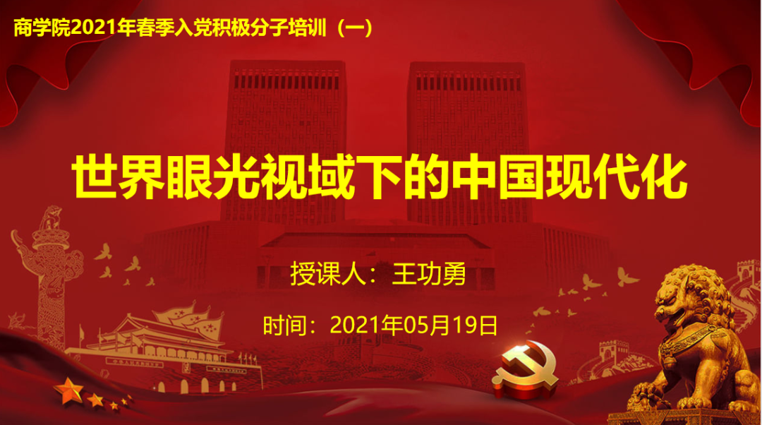 本次党课王书记讲解了世界眼光视域下的中国现代化,从艰难的历史中我们也更深刻地感受到党的伟大。我们要不忘初心,砥砺前行,作为当代青年更应坚定理想信念,提高思想觉悟,以更高标准要求自己,为中国特色社会主义事业做出贡献。