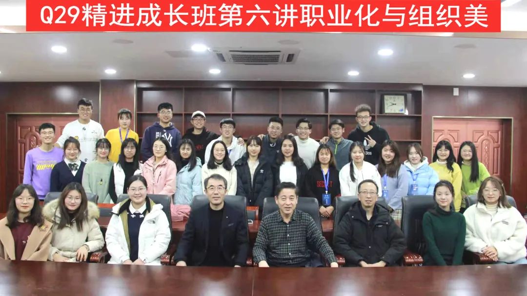 班级委员会主任王文鹏代表Q29班全体同学感谢崔强老师的精心授课,感谢学院党委的大力支持。老师们的谆谆教诲让同学们在思想觉悟、为人处世和职业化发展等方面有更加深刻的认识。Q29全体同学们定会认真学好专业知识,珍惜学习机会,脚踏实地,加强“苛”意练习,不断积累,不断精进成长。