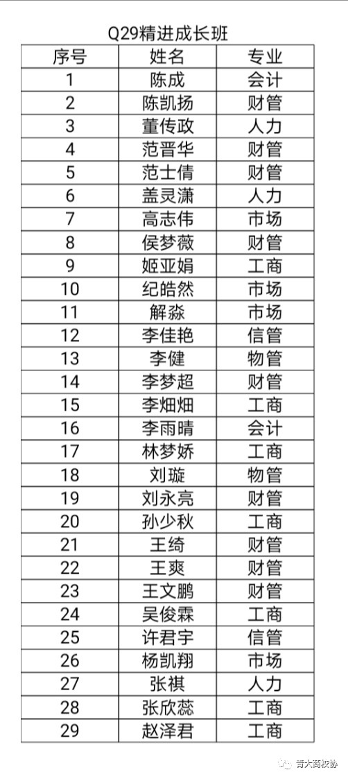 Q29精进成长班创新教育模式,充分挖掘精英校友的优质资源与平台,做到学校和社会的“无缝对接”,引导青年学生扩大格局,开阔视野,增强综合素质,提高市场竞争力,激励成长为懂得感恩、回馈社会的有为青年。Q29精进成长班(第2期)的开班仪式标着Q29精进成长班的工作取得阶段性的成果。