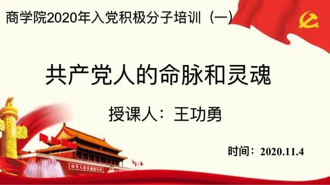党委书记王功勇授课“共产党人的命脉和灵魂”,各学生支部书记,学生党员代表和全体入党积极分子同上第一堂课。