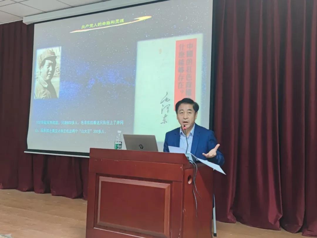 信仰是共产党人经受住任何考验的精神支柱。王书记讲述了早期党史,1921年中共一大境况,1927年“四·一二”政变,1934年第五次反围剿失败,长征,1949年全面解放,一幕幕血性历史画面,一步步红色历史推进,真正的共产党人抛头颅洒热血舍生忘死坚守信仰,最终写下了胜利的篇章。信仰是力量之源,没有任何一种东西可以取代信仰,铭记党史,怀揣信仰才能走长走远。