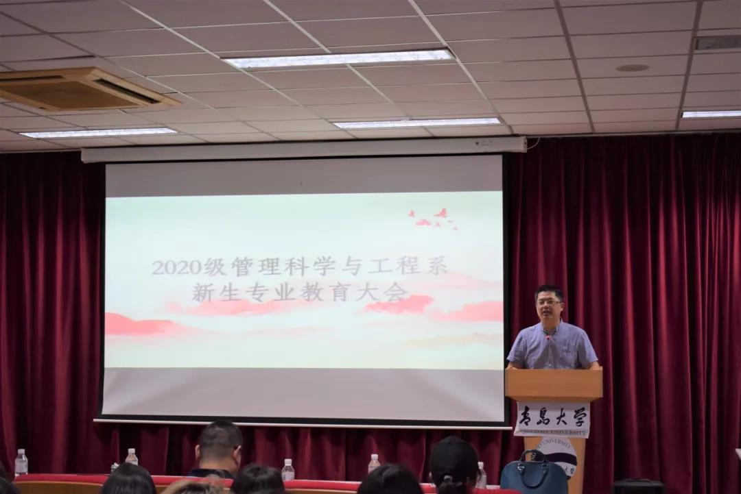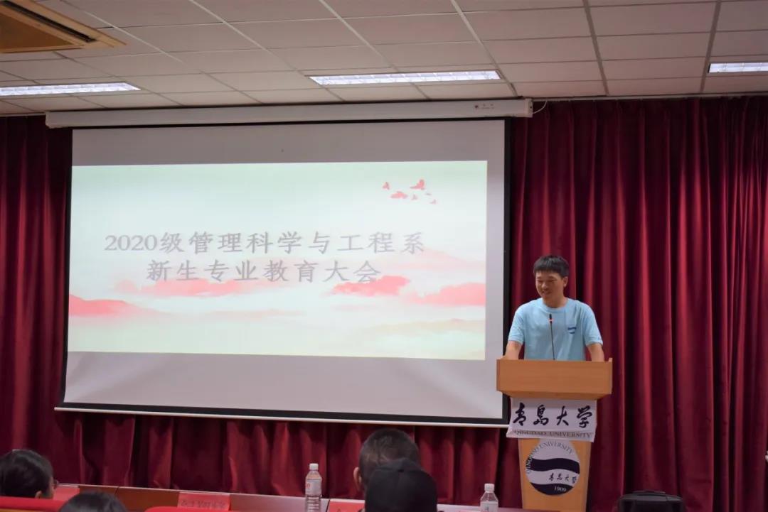 国际商务系翟晓东老师介绍了专业的学科历史及专业介绍,并展示了国际商务系的专业课程、师资力量和科研产出,并鼓励新生努力学习,提高本系的继续深造率。